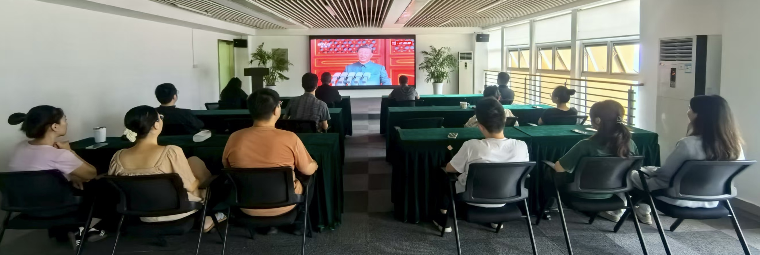 9月3日上午,纪念中国人民抗日战争暨世界反法西斯战争胜利80周年大会在北京天安门广场隆重举行。富华商创组织员工共同观看大会直播盛况,认真学习习近平总书记在纪念中国人民抗日战争暨世界反法西斯战争胜利80周年大会上发表的重要讲话,见证这一承载历史重量、彰显民族力量的庄严时刻。